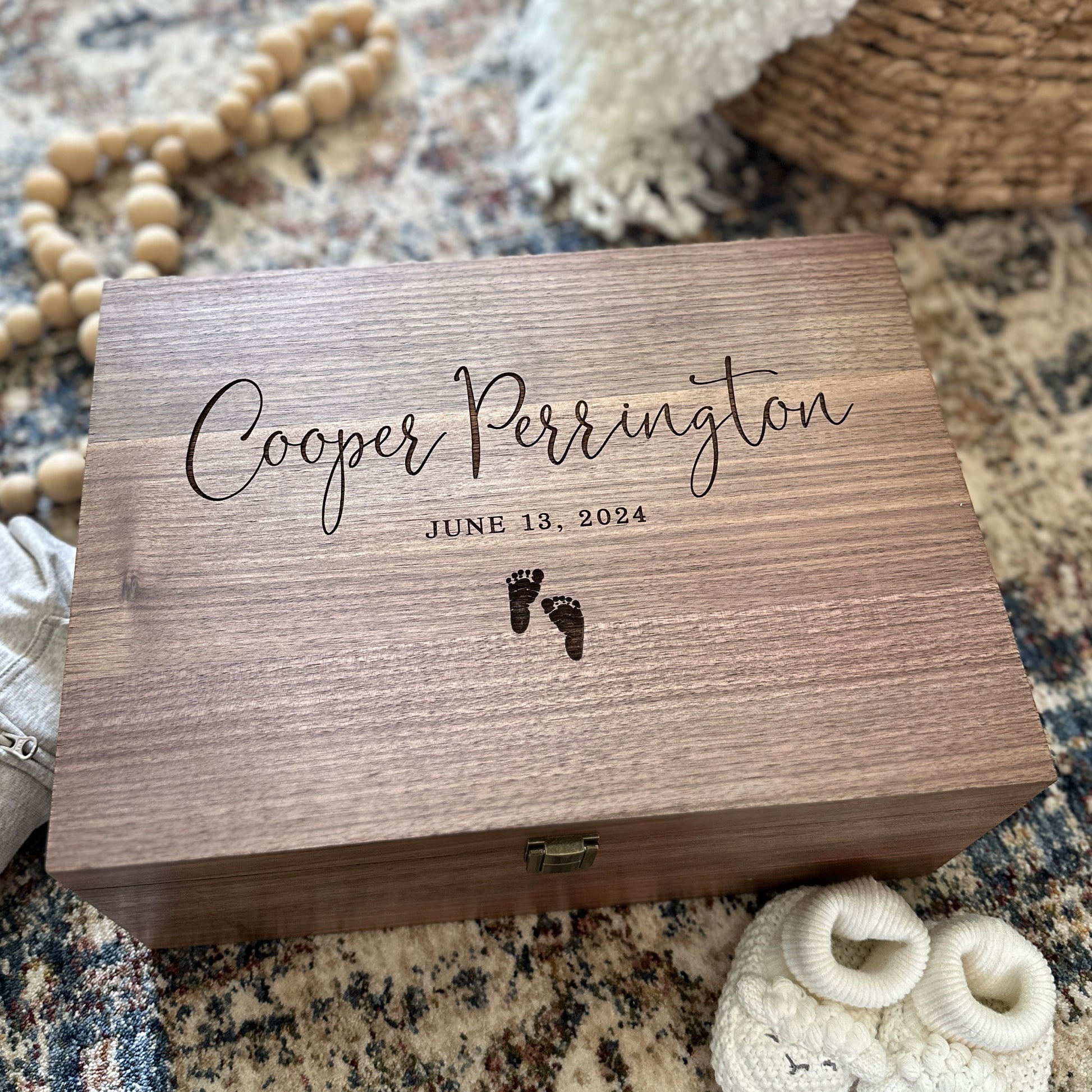 Our Walnut Keepsake Box is perfect to keep your little ones childhood memories in for years to come. Personalized just for you or someone special. Keepsake boxes make a great gift to store all their treasures.
