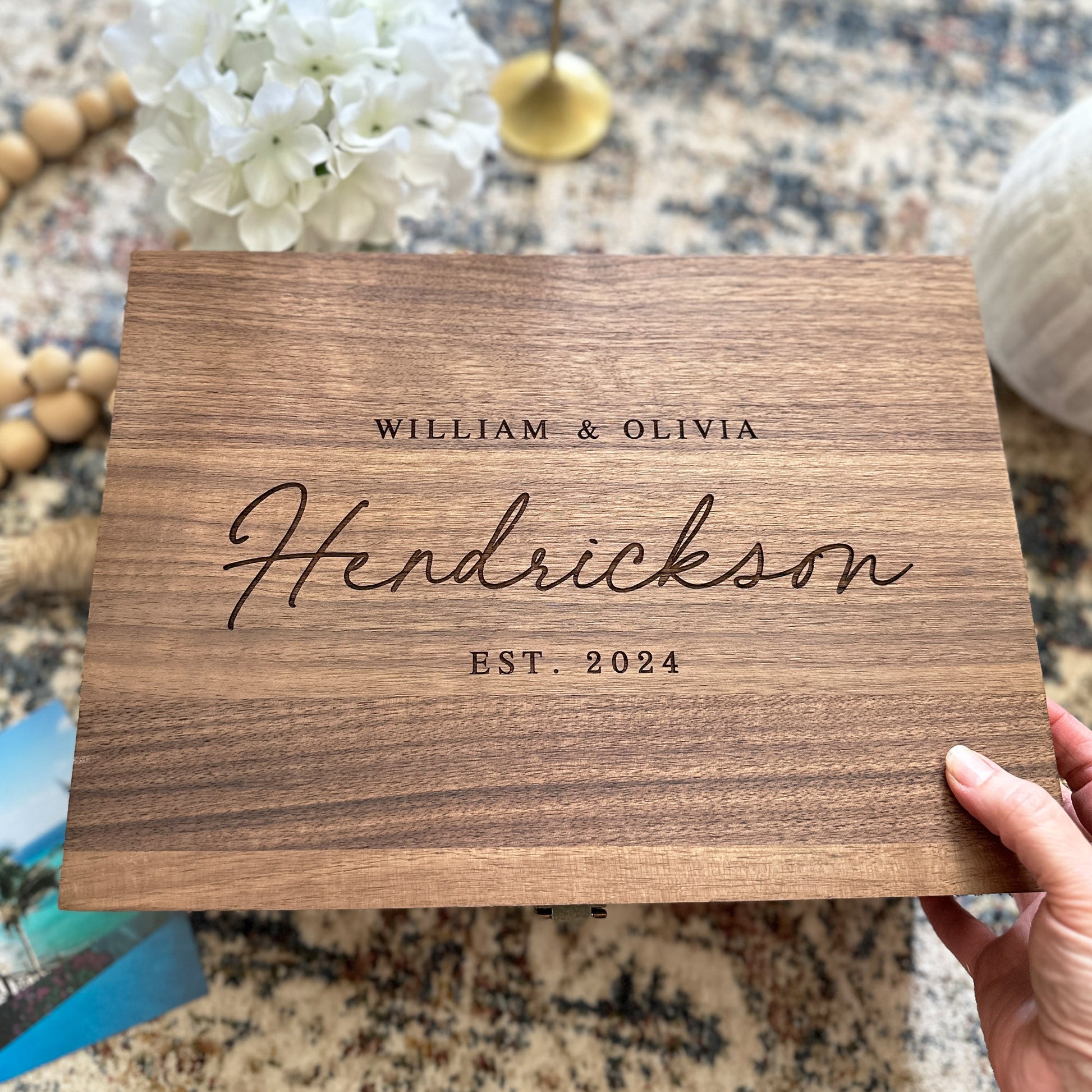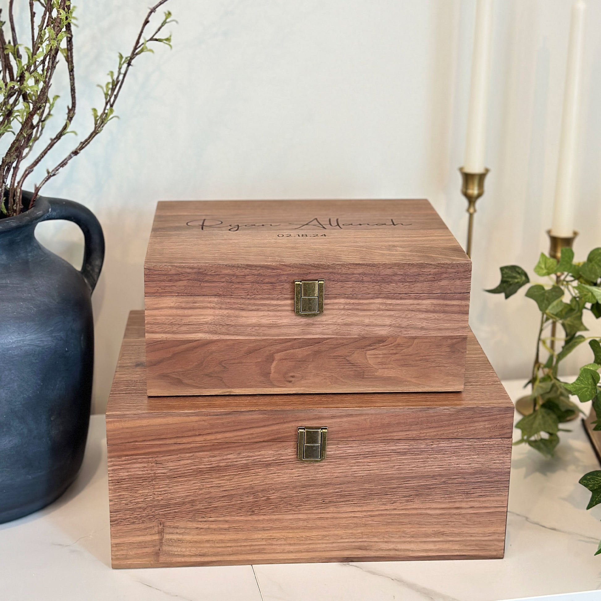 Our personalized walnut keepsake box is designed to hold your most cherished items, from photographs and letters to small mementos. What sets our keepsake box apart is the ability to customize it with names, dates, or meaningful messages, making it an ideal gift for weddings, anniversaries, graduations, or any special occasion.