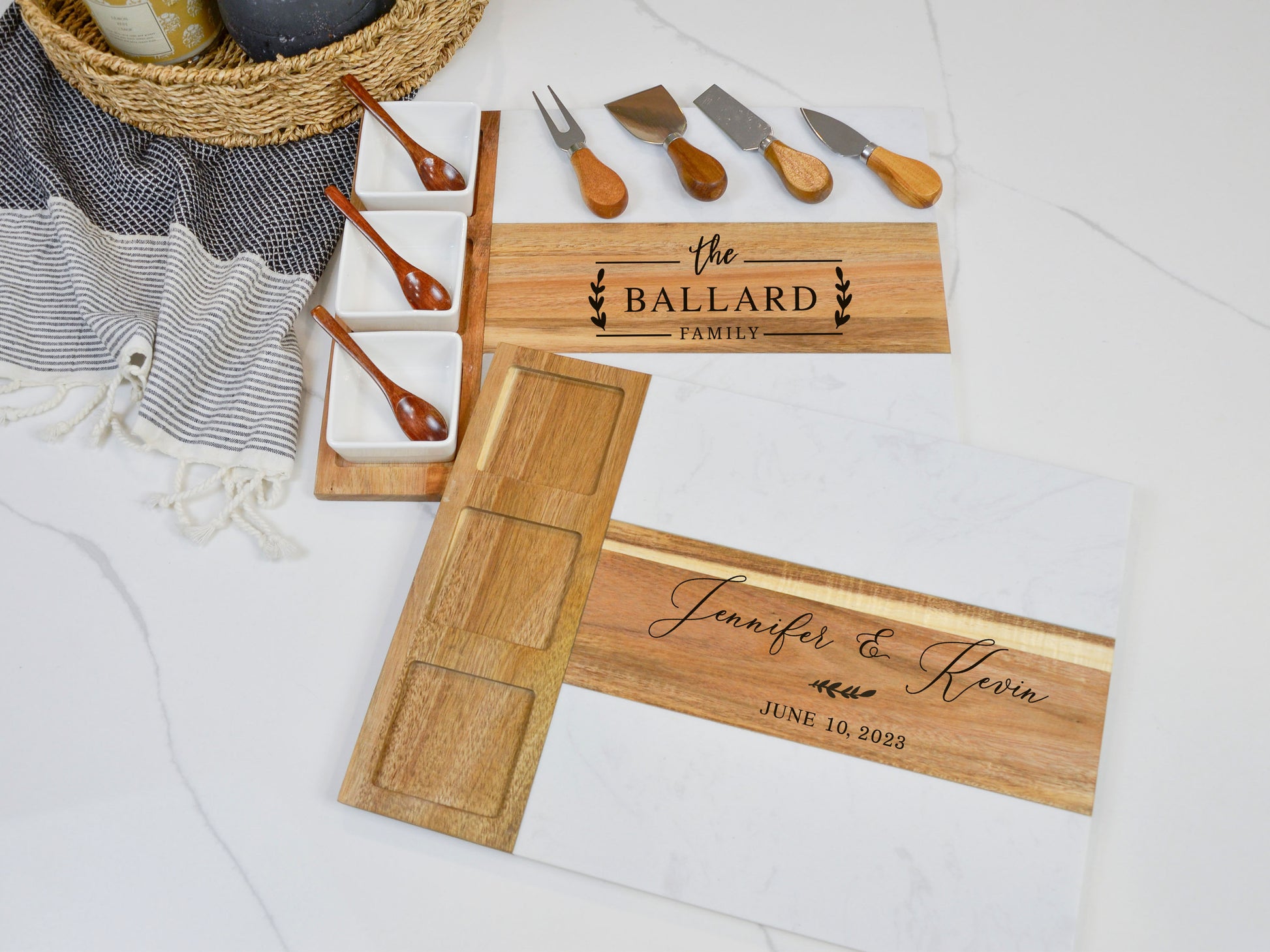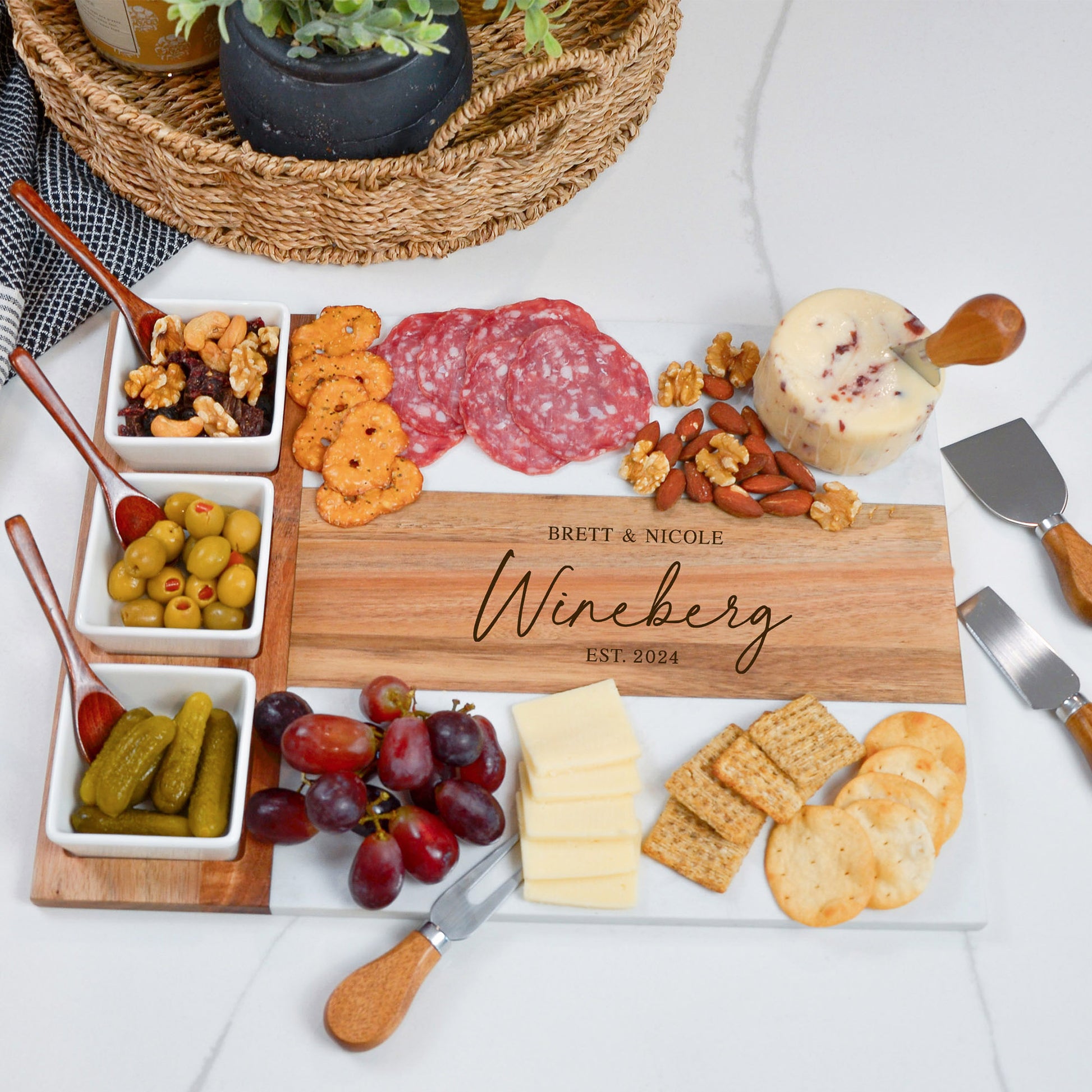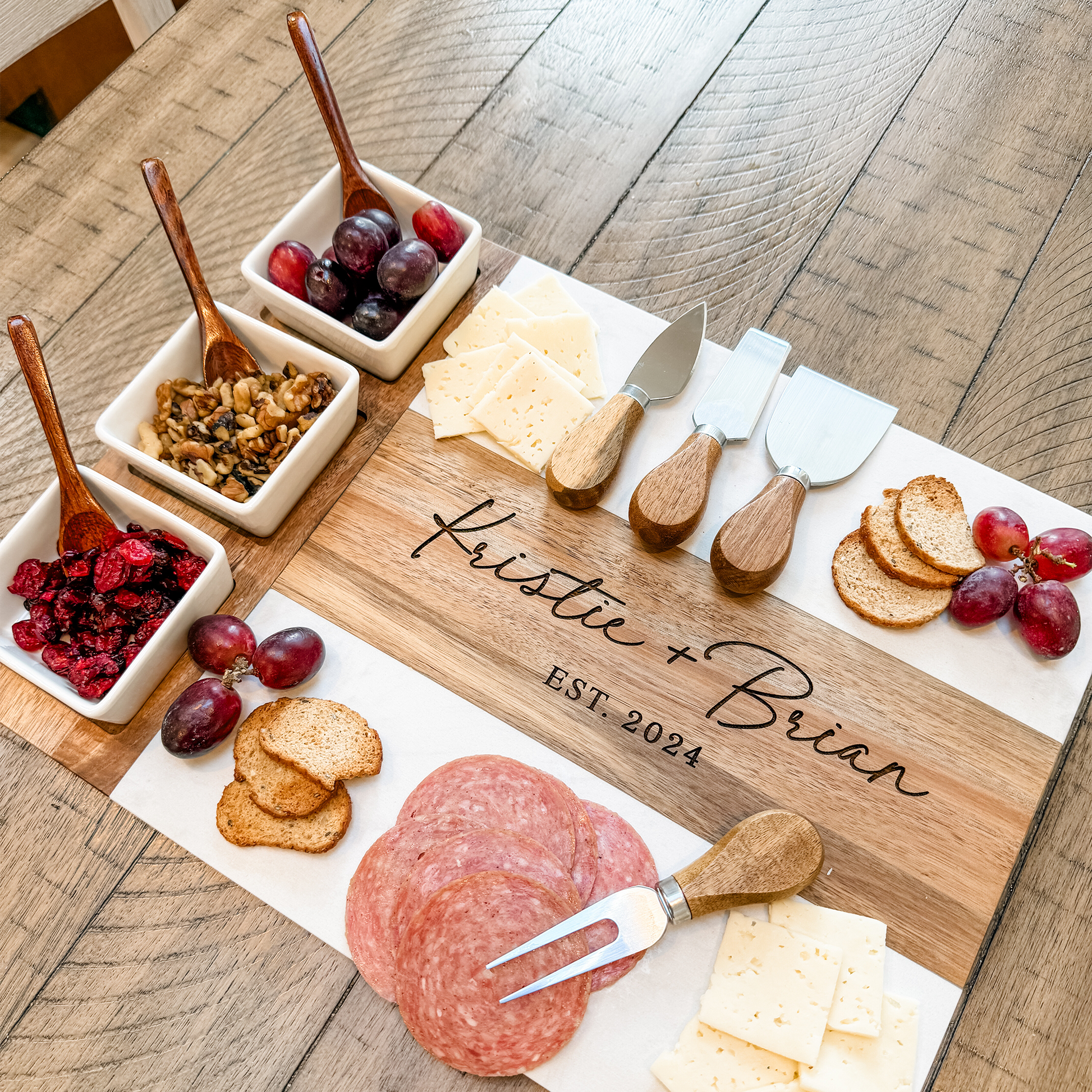 Personalized Marble Wood Charcuterie Board Set