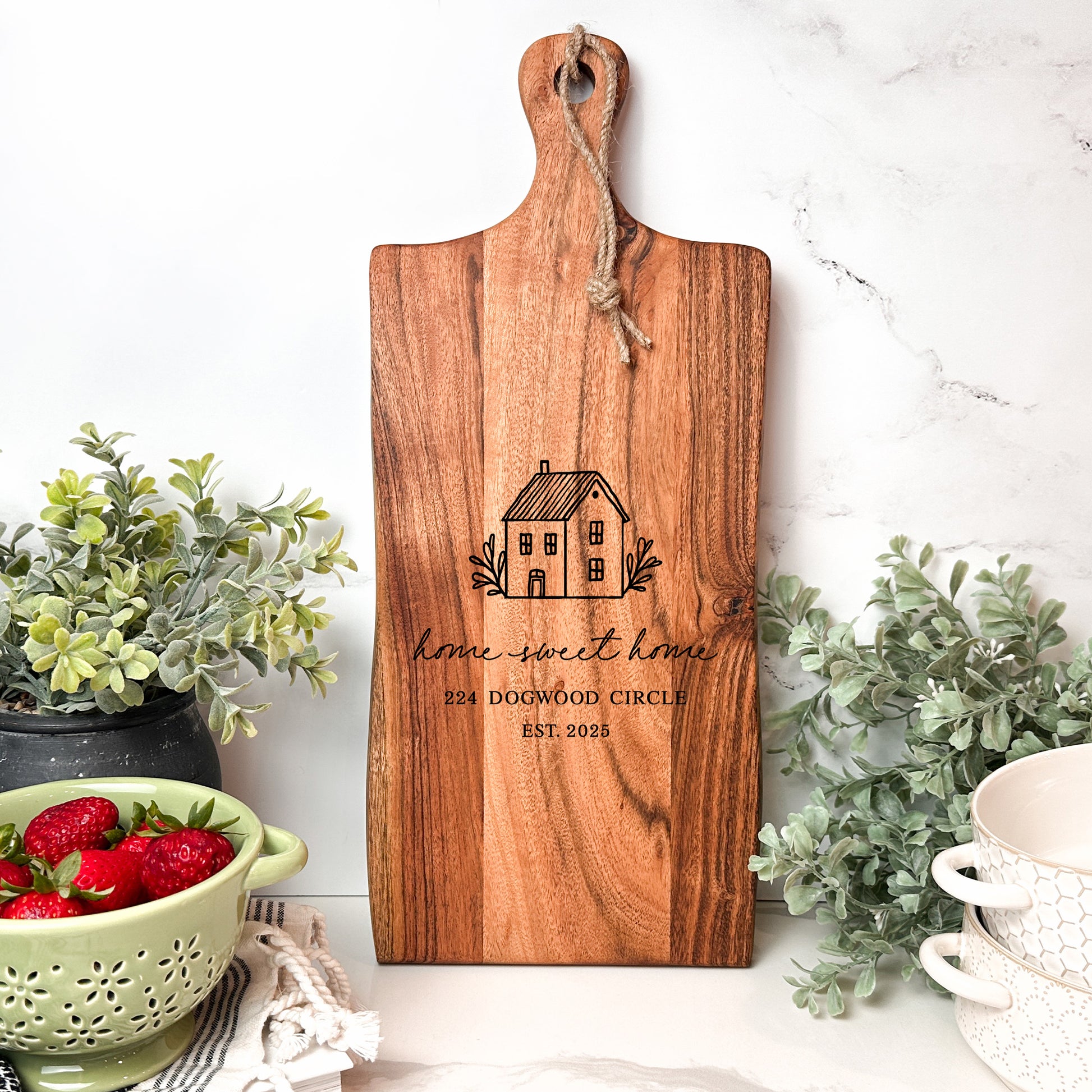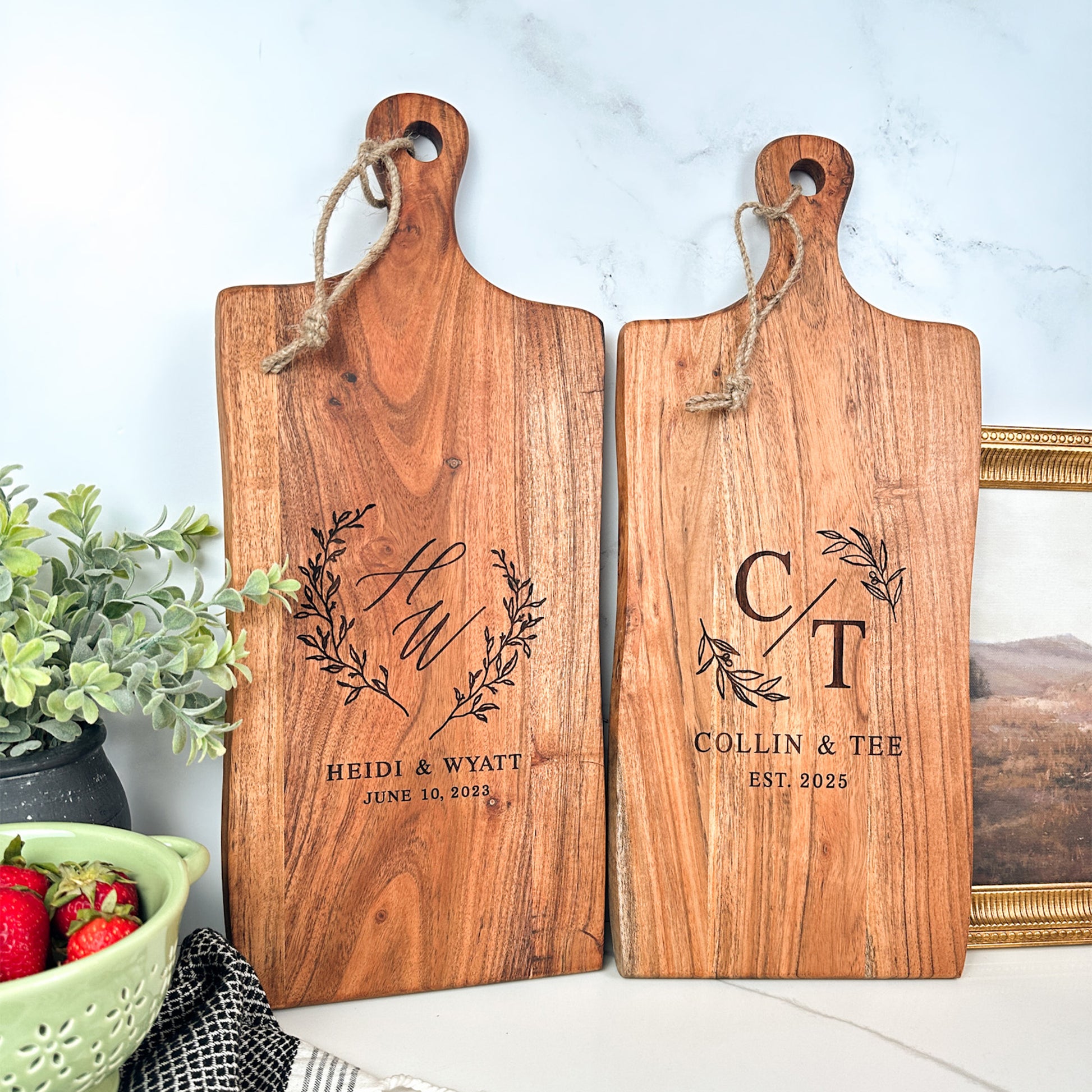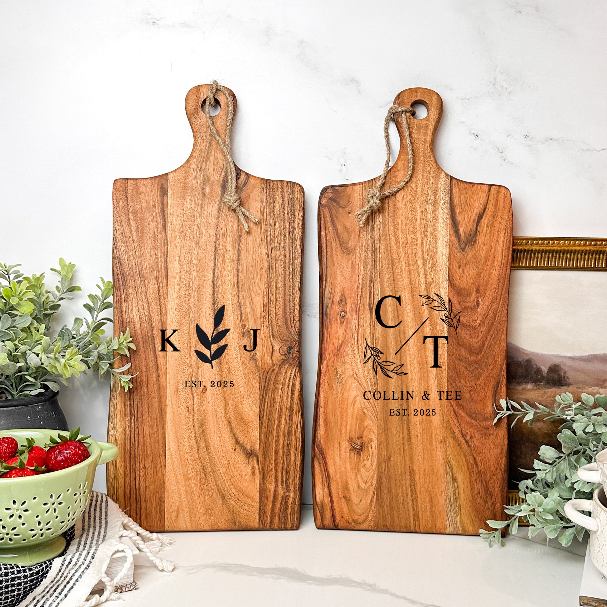 Please be aware that every cutting board is made from different wood and is unique. Due to the nature of wood, some boards may engrave slightly lighter or darker than the photo shows. Natural characteristics of wood will include knots, blonde color lines/stripes in the grain, minor cracks and coloring. Each wooden board is unique due to natural wood elements.